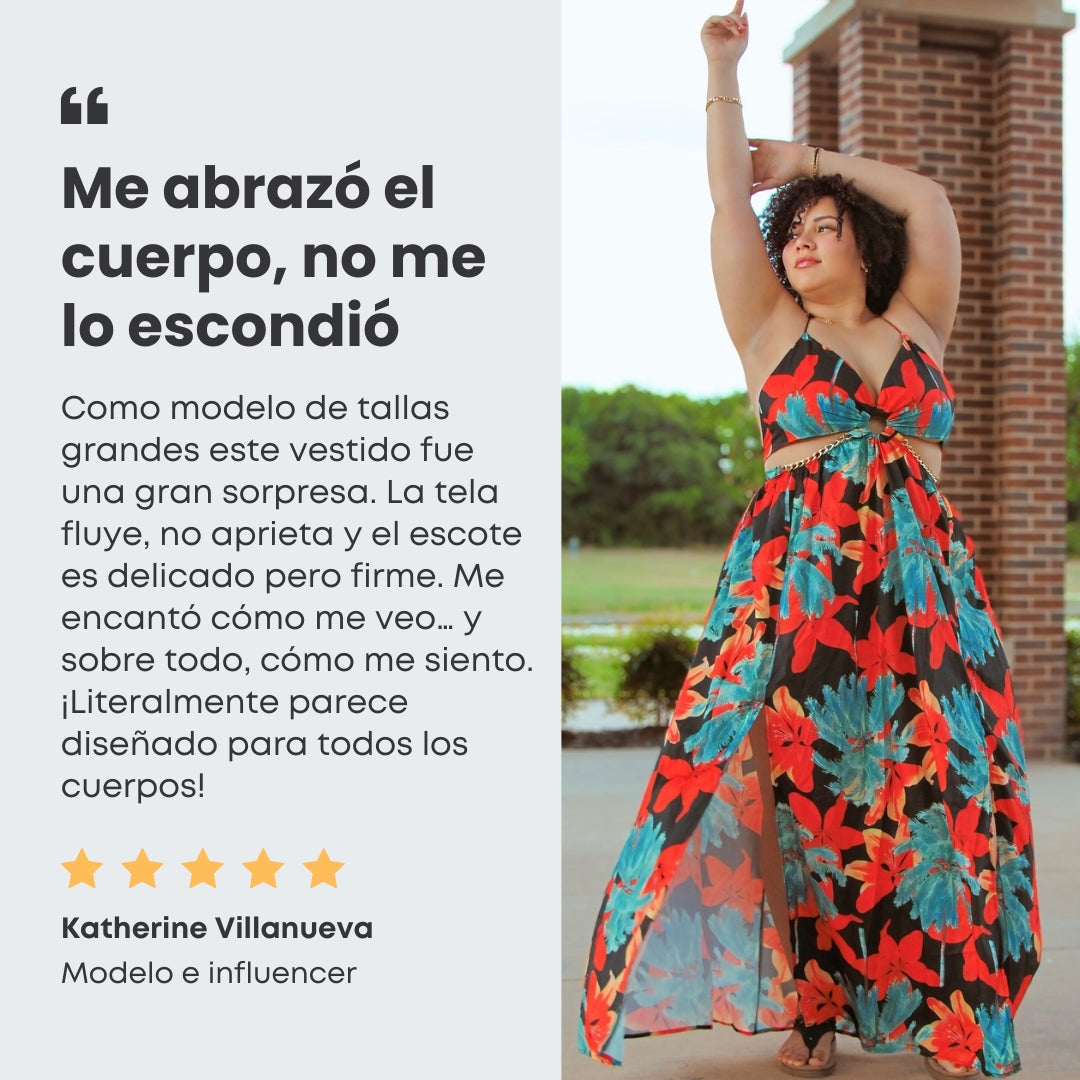 No importa si eres curvy, bajita, alta o delgada: este vestido trabaja a favor de tu figura. El corte imperio resalta el busto y deja libertad en la parte baja, suavizando el abdomen, las caderas o cualquier zona que normalmente te incomoda. Su caída elegante te permite sentirte ligera, femenina y segura.